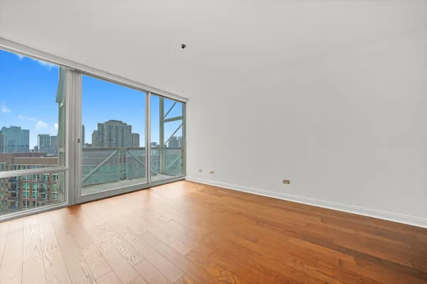 Stunning 1 Bedroom + Den in the Heart of River North! This rarely available "08" tier condo boasts floor-to-ceiling windows, hardwood floors, and a private balcony. The oversized kitchen features granite countertops, light gray/white cabinetry, stainless steel appliances, and a large island overlooking the open-concept living and dining area. The spacious den is ideal for a home office or flexible space to suit your needs. The bedroom comfortably fits a king-size bed and includes a walk-in closet. Upgrades include fresh paint, a fridge replaced in 2020, a dishwasher replaced in 2025, wood flooring updated in 2025, and a bathroom remodeled in 2019. Heated garage parking ($35K) and additional storage are included. Building amenities feature a 24/7 doorman, fitness center, and two nearby dog parks. Located just steps from the Loop, Starbucks, Erie Park, cafes, fine dining, CTA, and more! Take a 3D Tour - click the 3D button to explore every detail of this beautiful home.